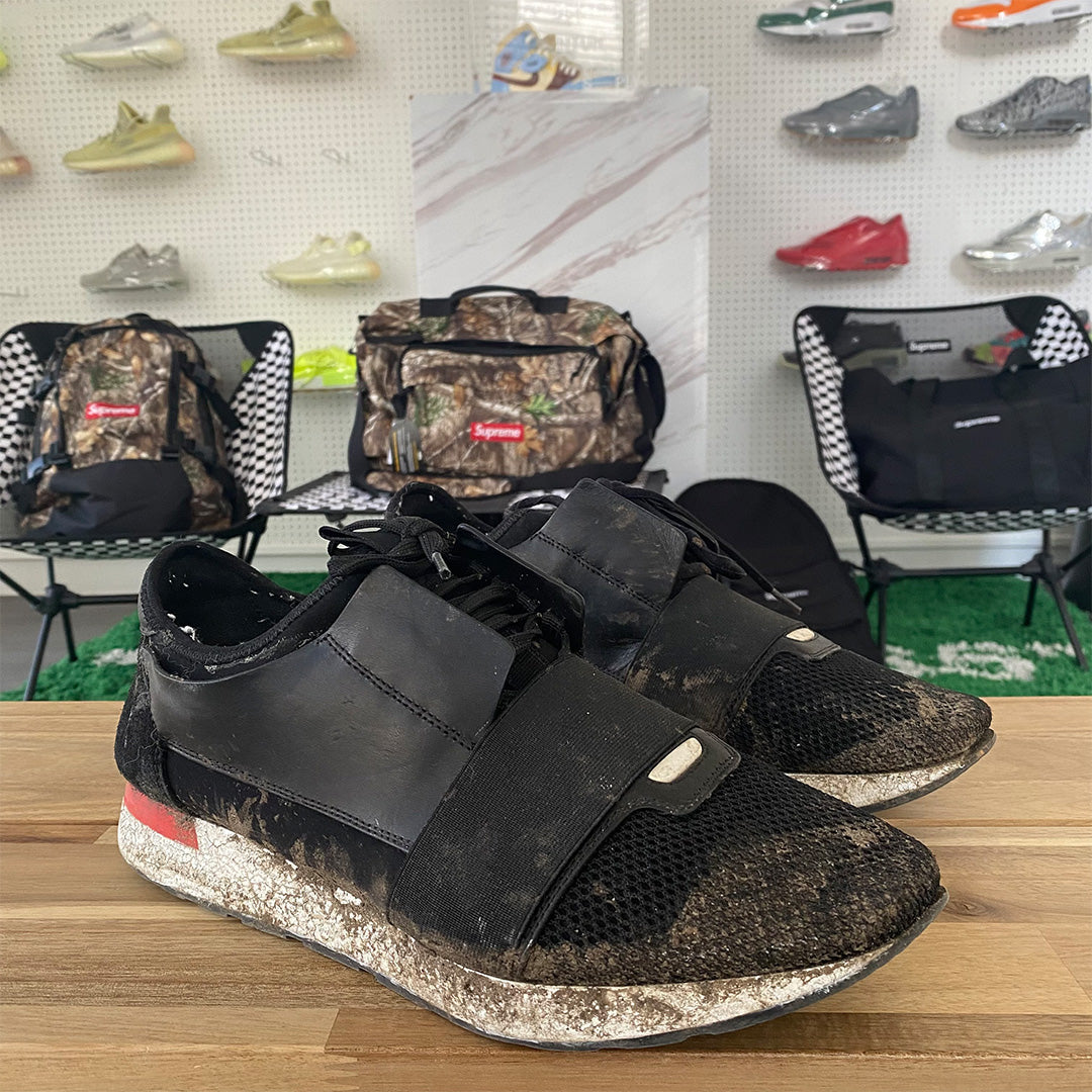 Premium shoe cleaning service offers a comprehensive clean, including upper, under, and midsole treatment, lace wash, and a fresh deodoriser to keep your footwear looking and smelling brand new.